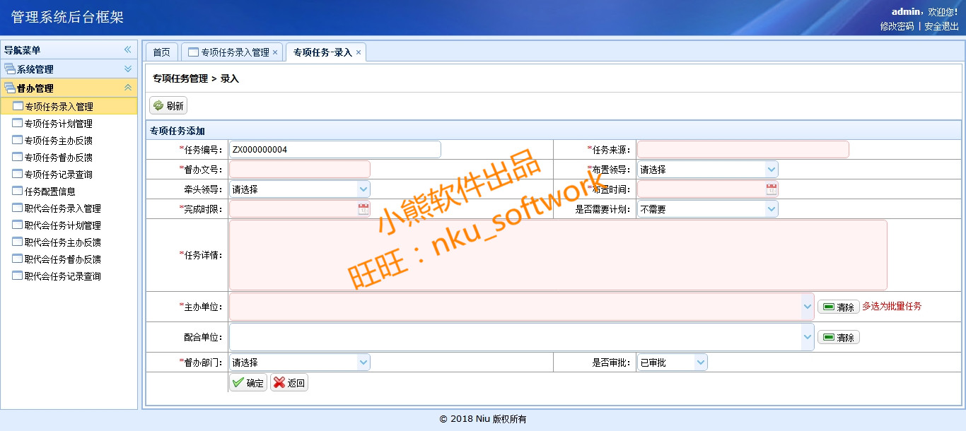 任务督办审批系统框架、督导管理、任务审批